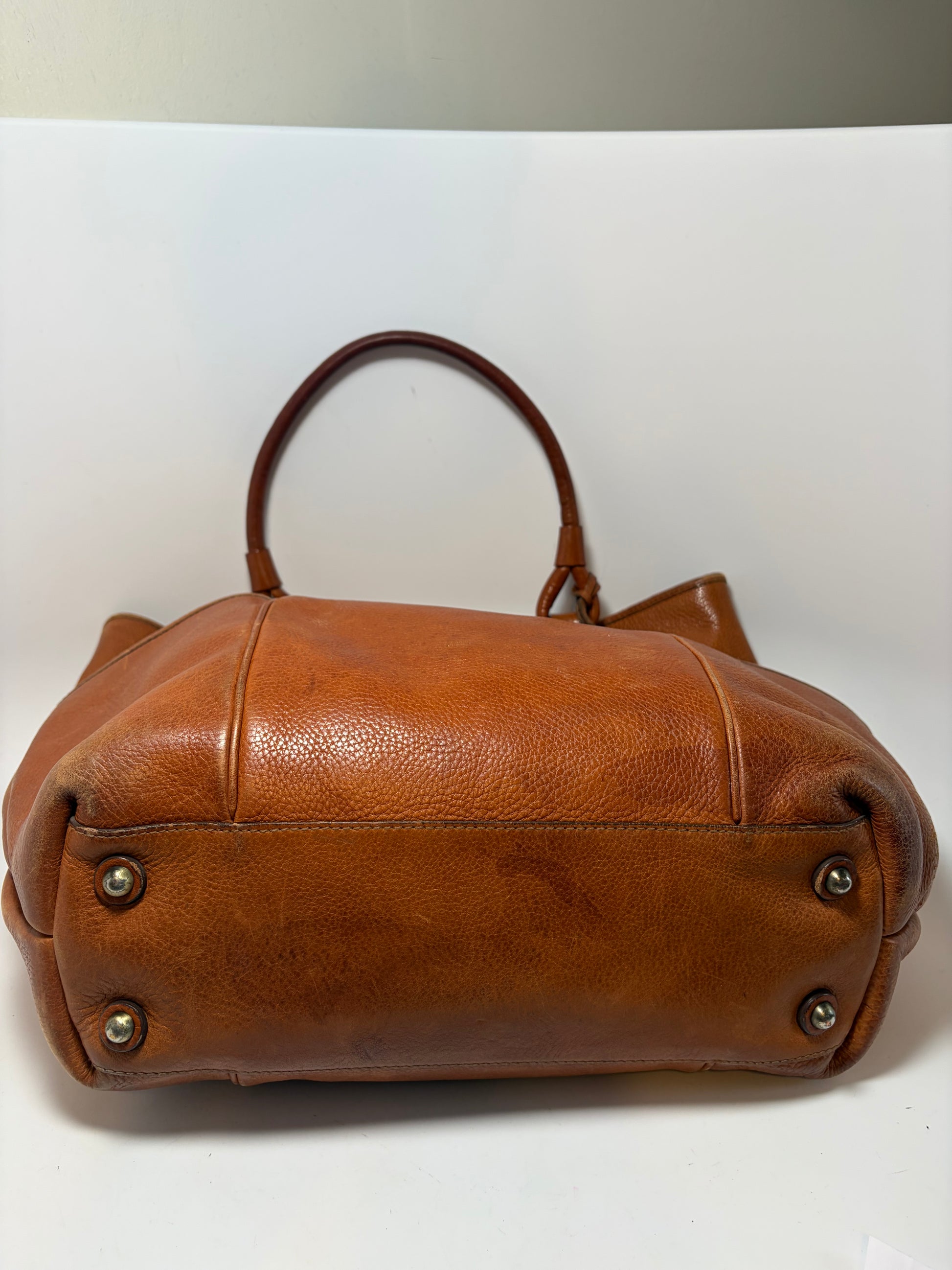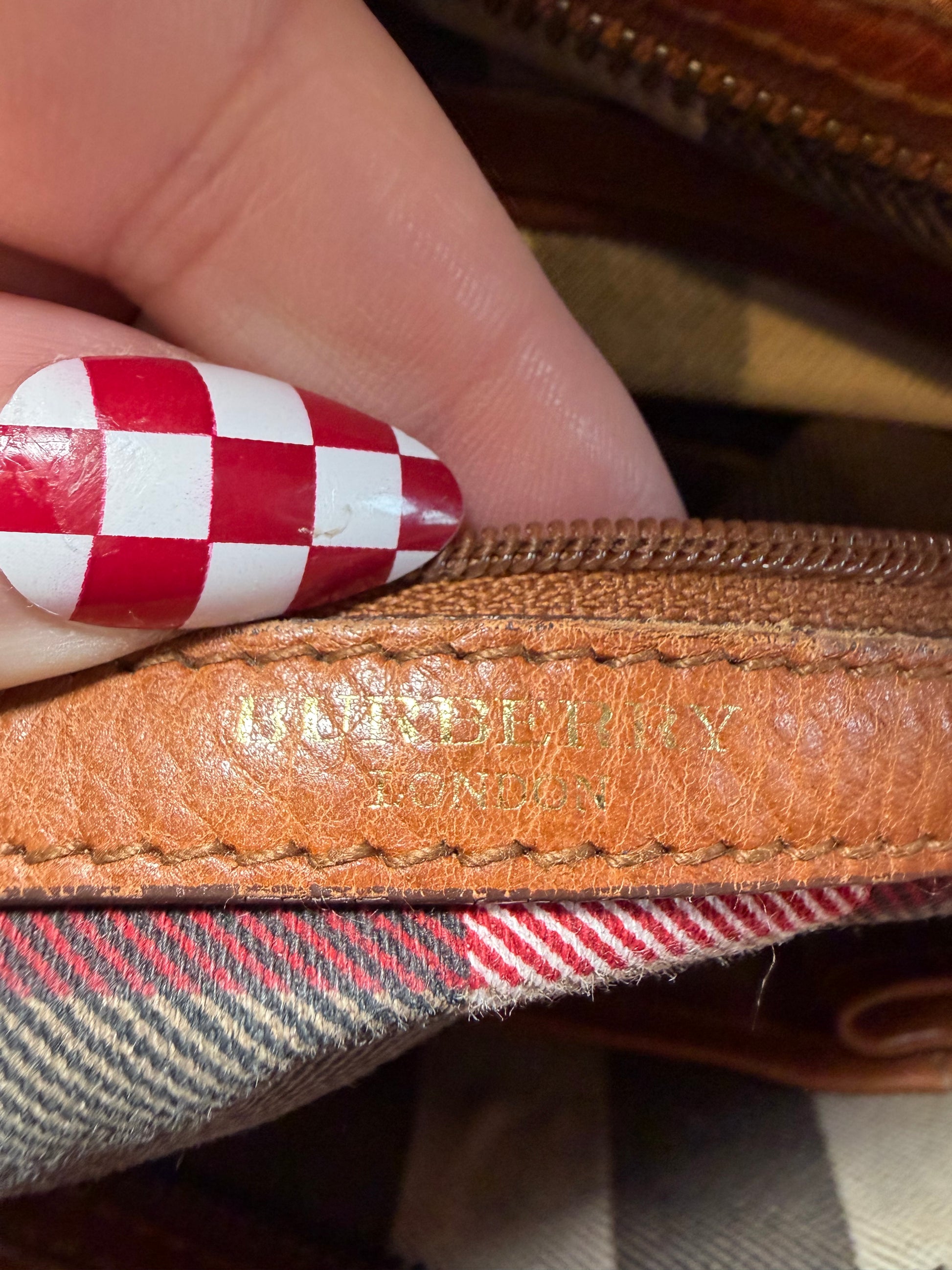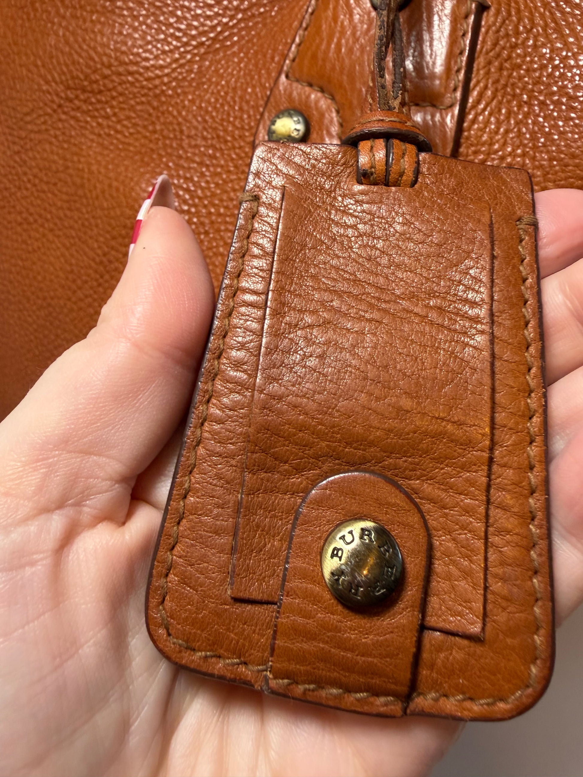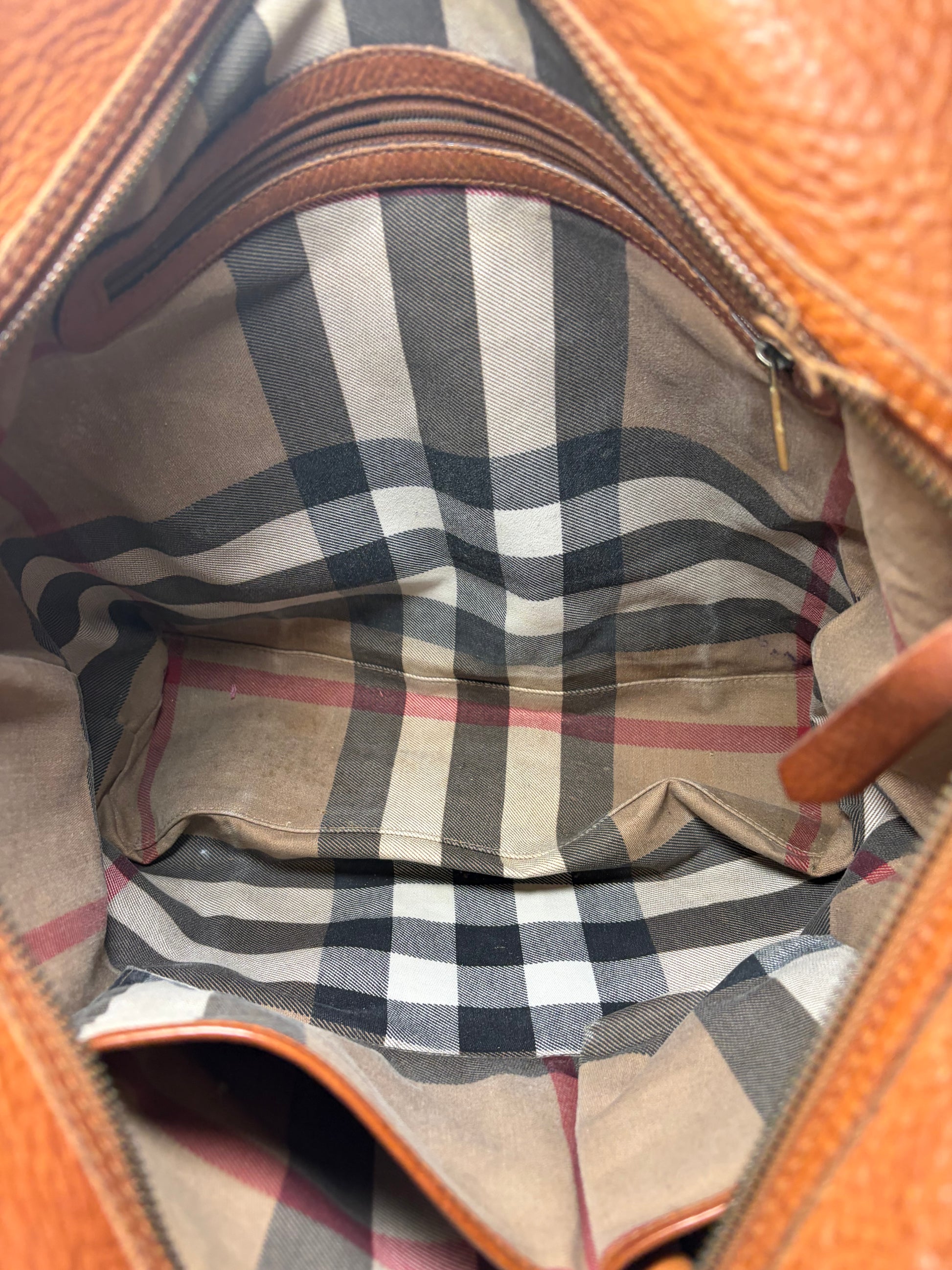 Burberry Large Pebbled Leather Tote W/Plaid Check Interior