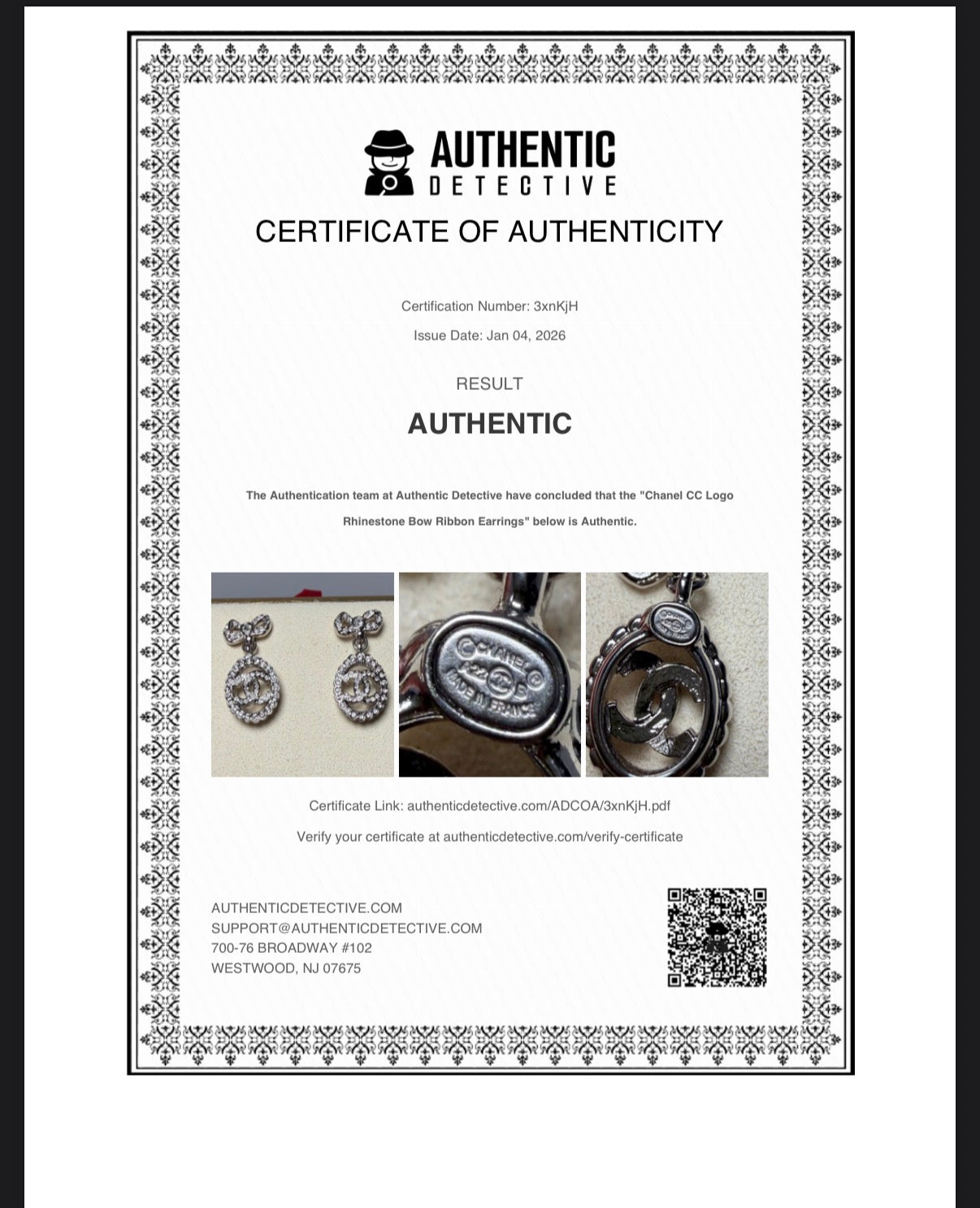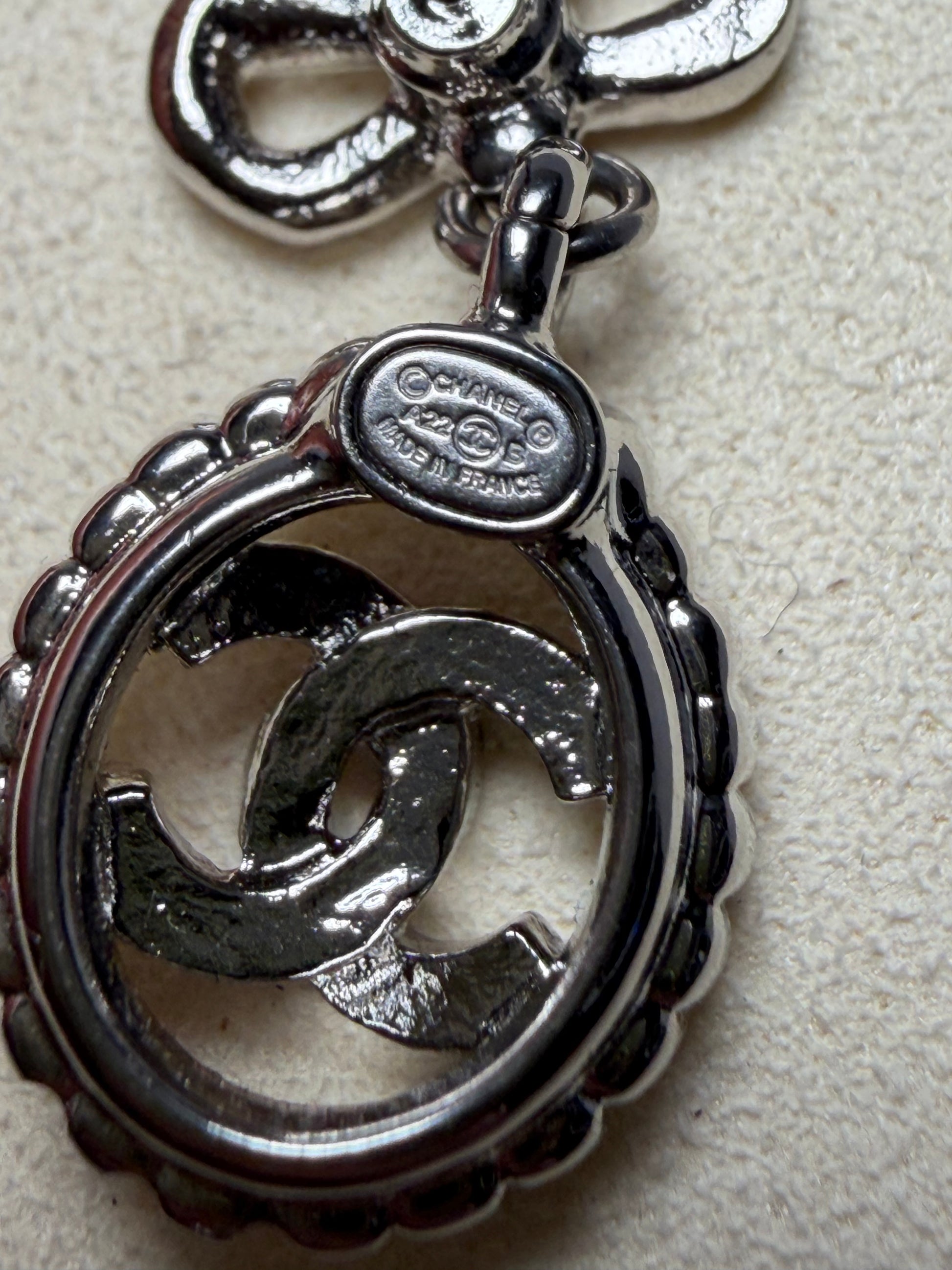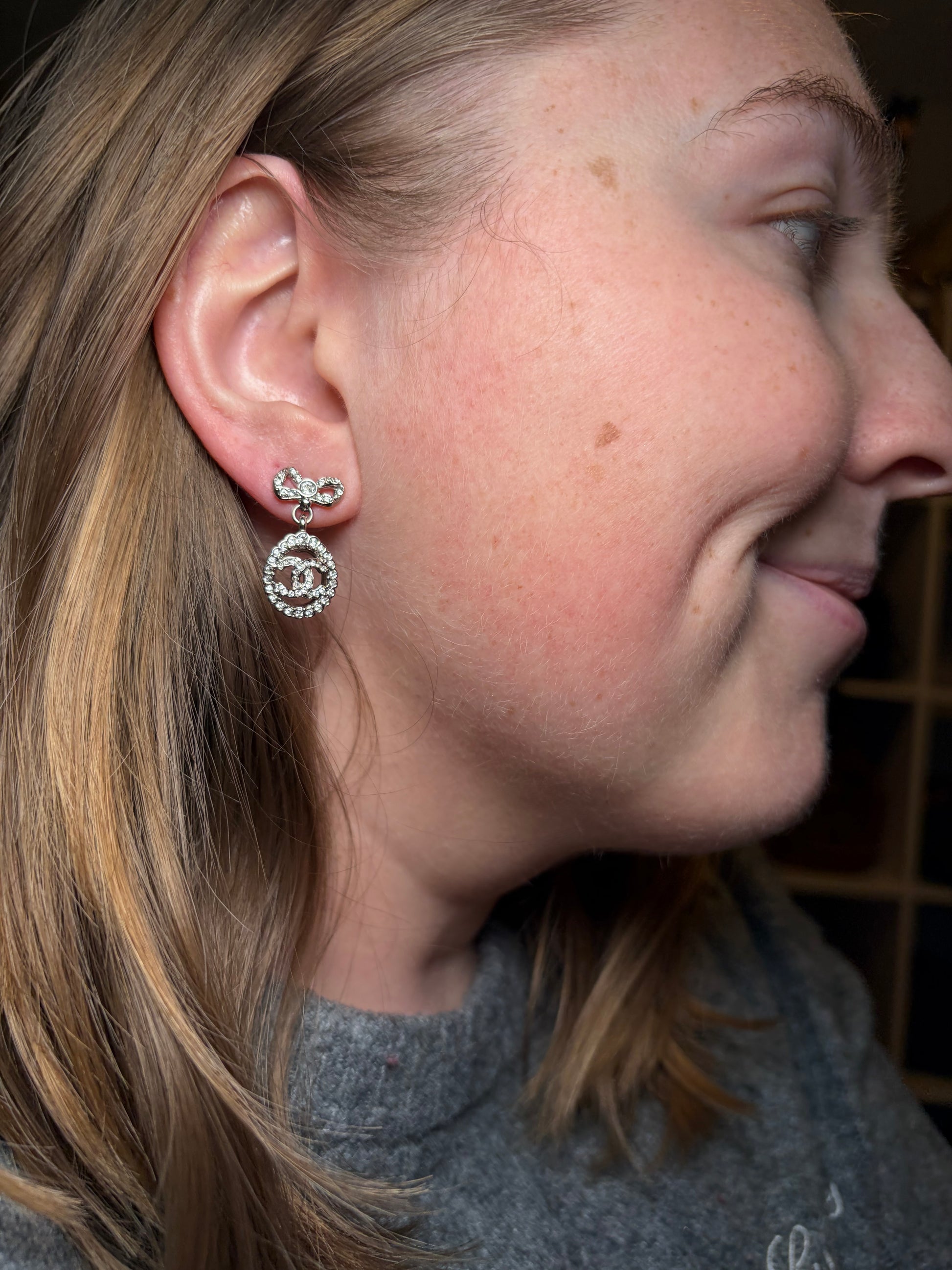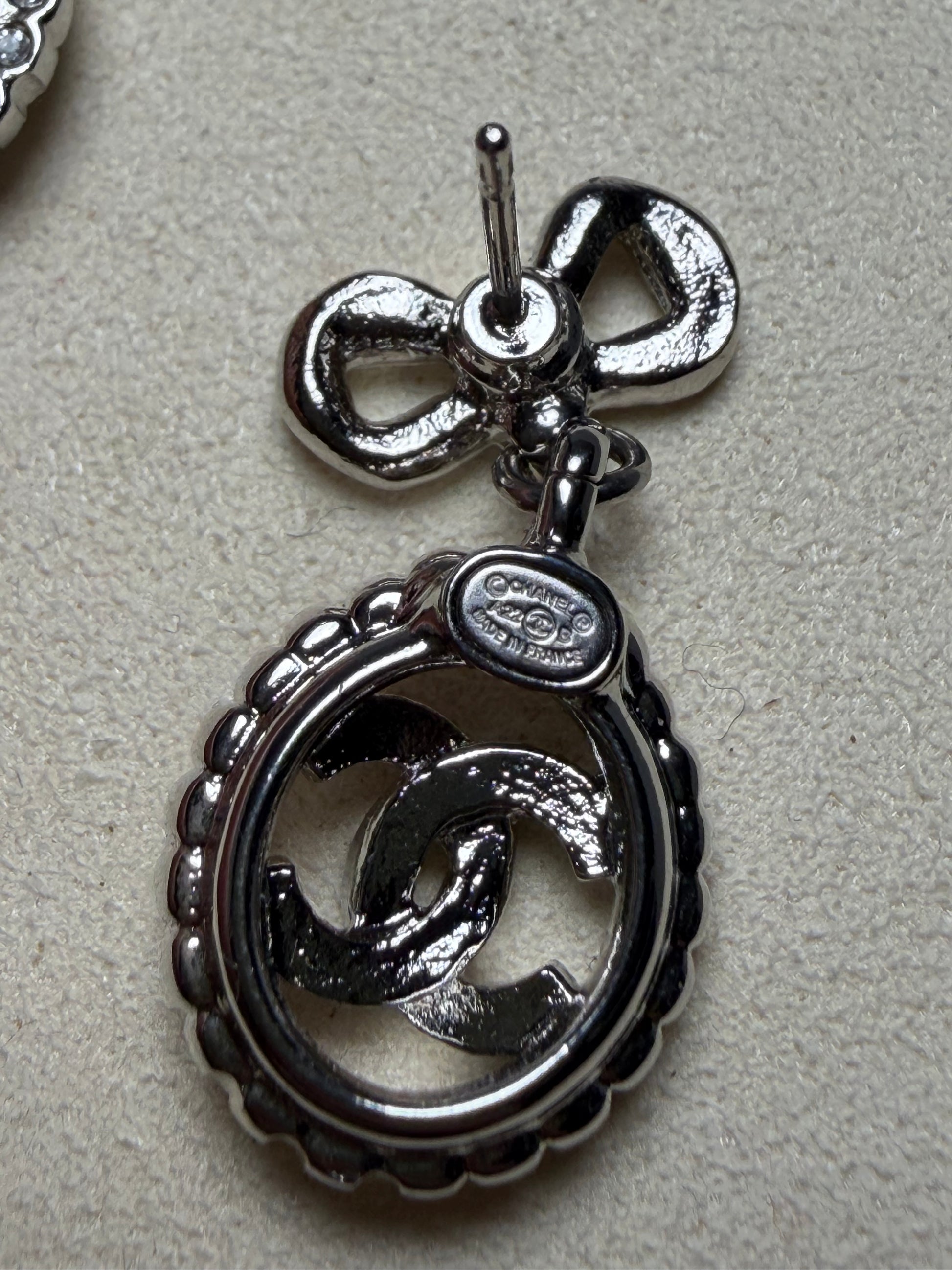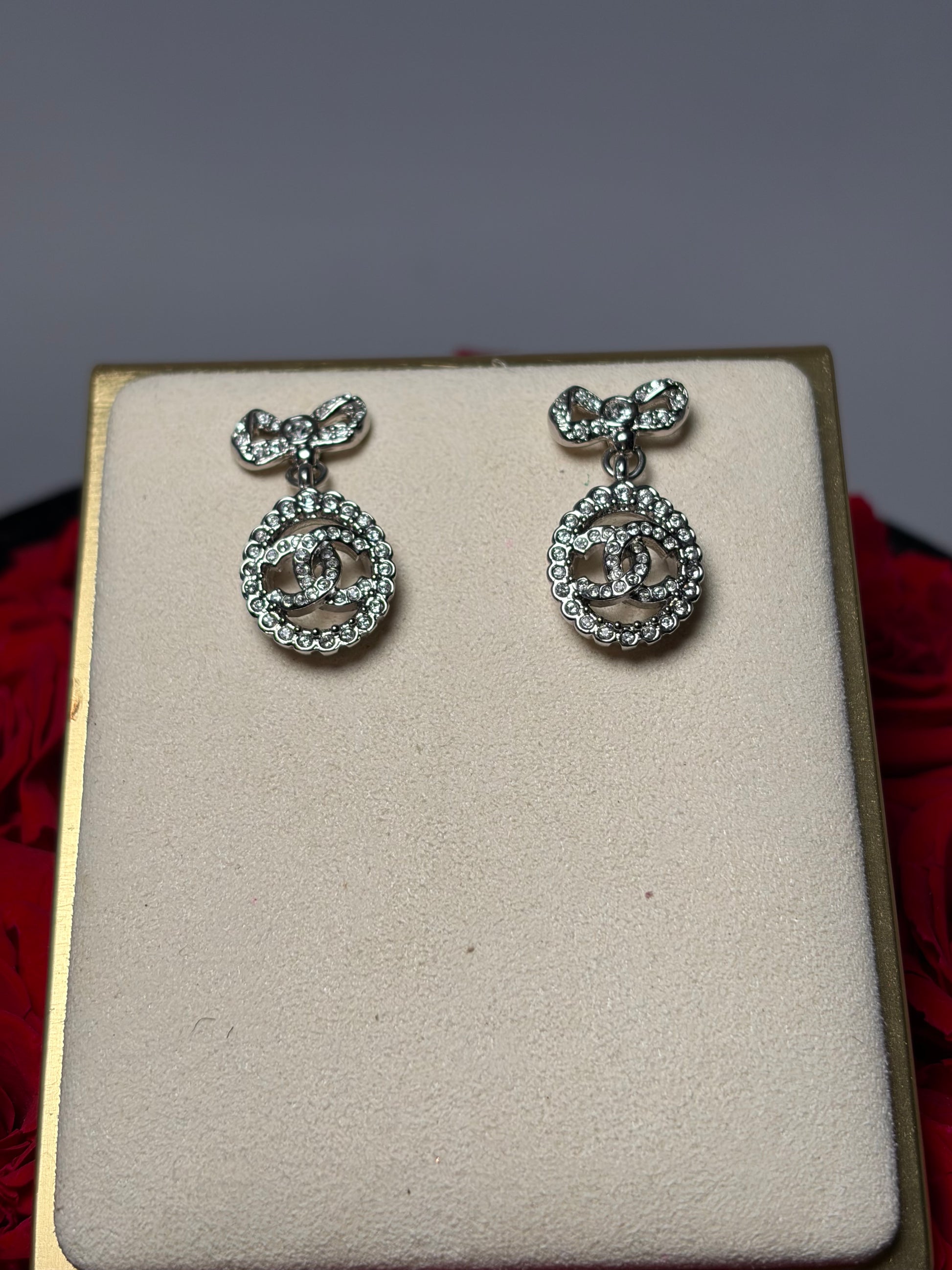 Beautiful Chanel earrings come with the box & certificate of authenticity. very good condition. CC logo with bows. No crystals missing.