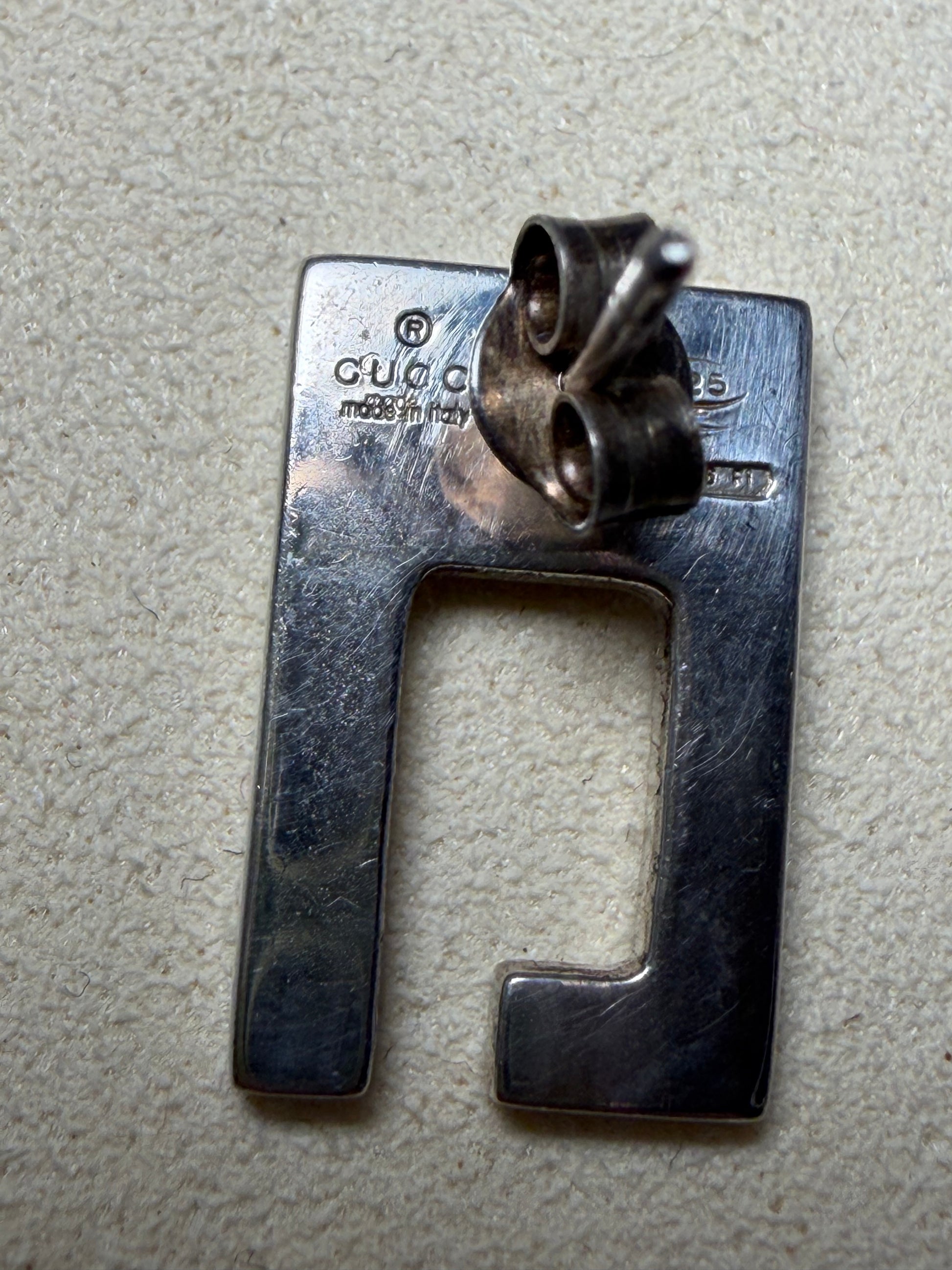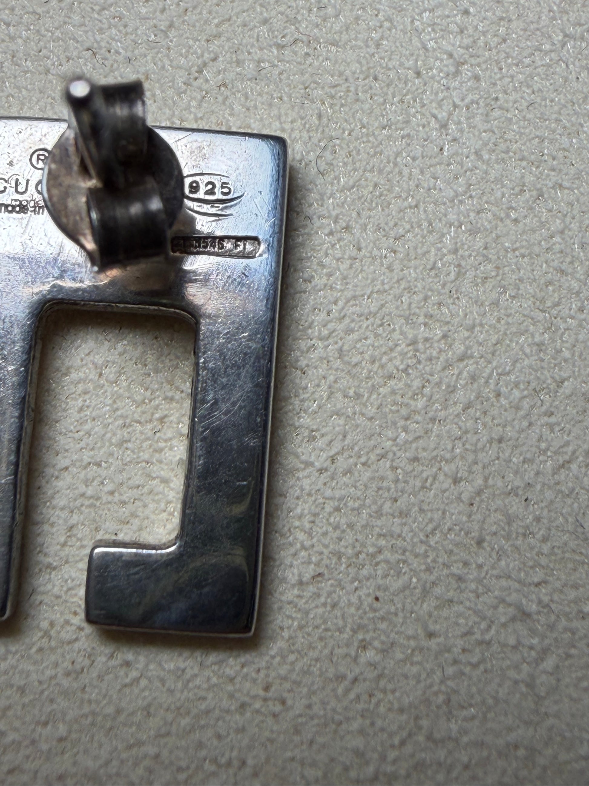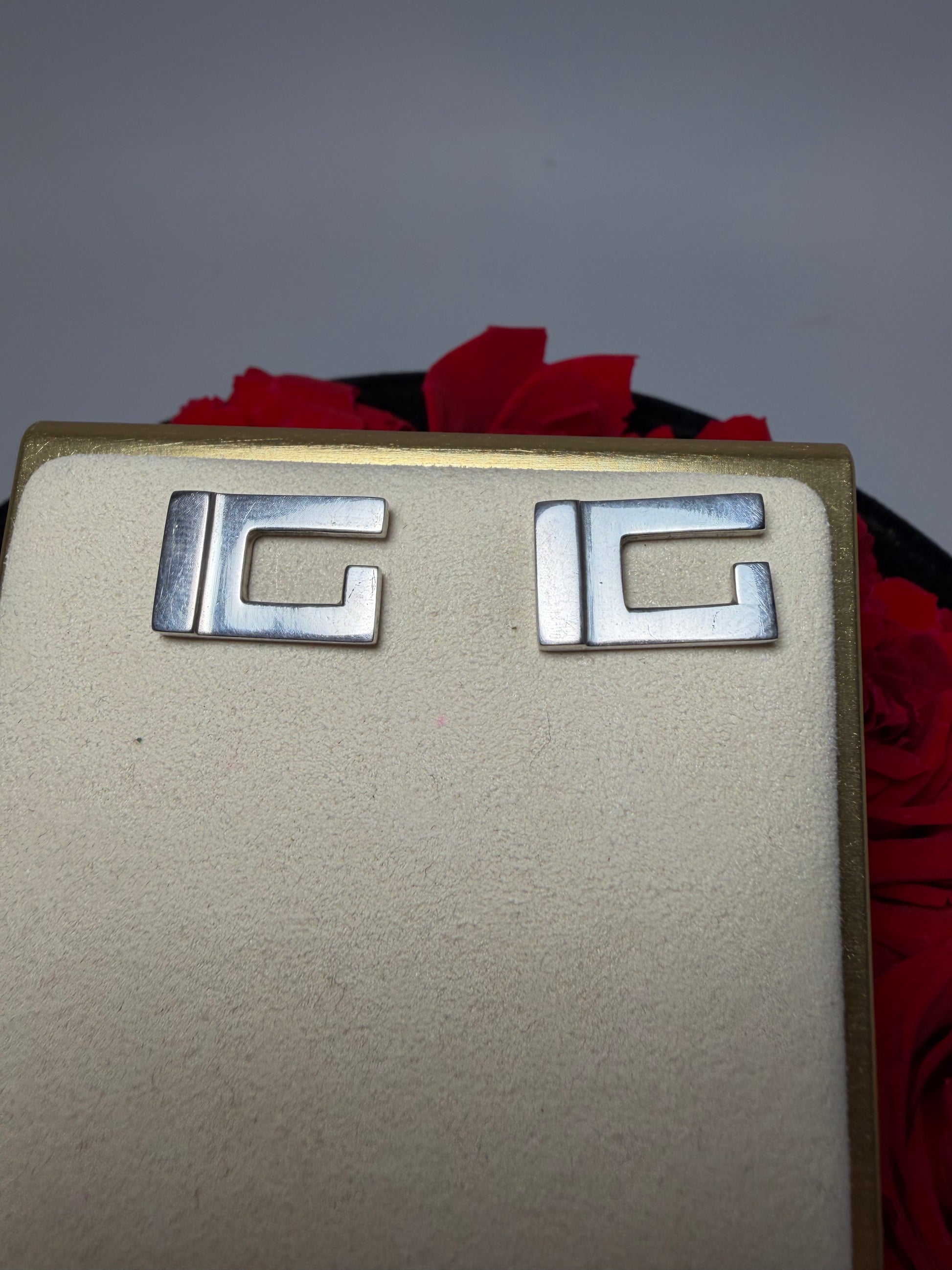 Gucci GG 925 Sterling Silver Stud Earrings with Dust Bag & COA