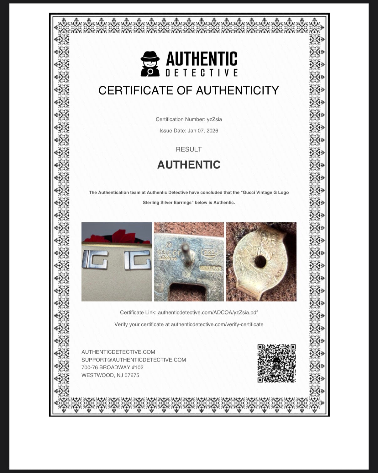 Good condition. Some wear on the back. Just needs a good polishing! 925 sterling silver. Comes with certificate of authenticity from authentic detective and the Gucci dust bag.
