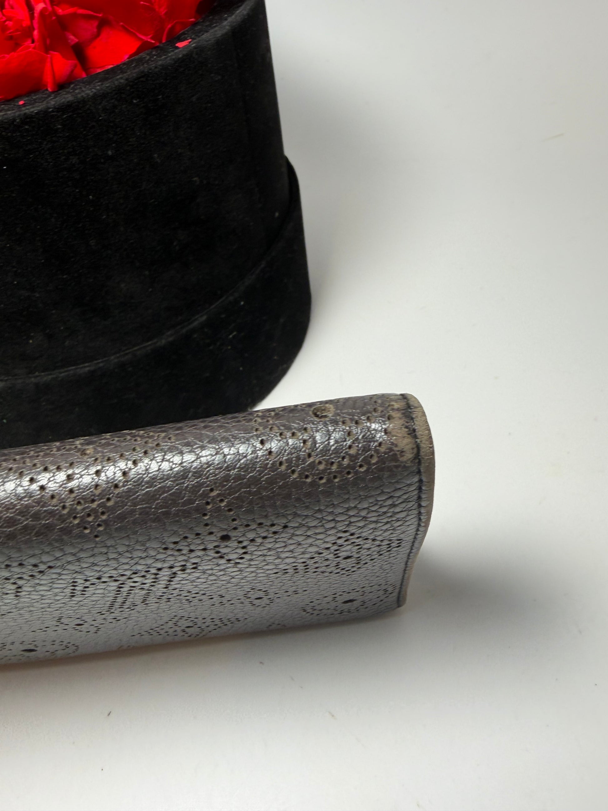Fair condition. Has some edge wear and fading (pictured). Lock closure.