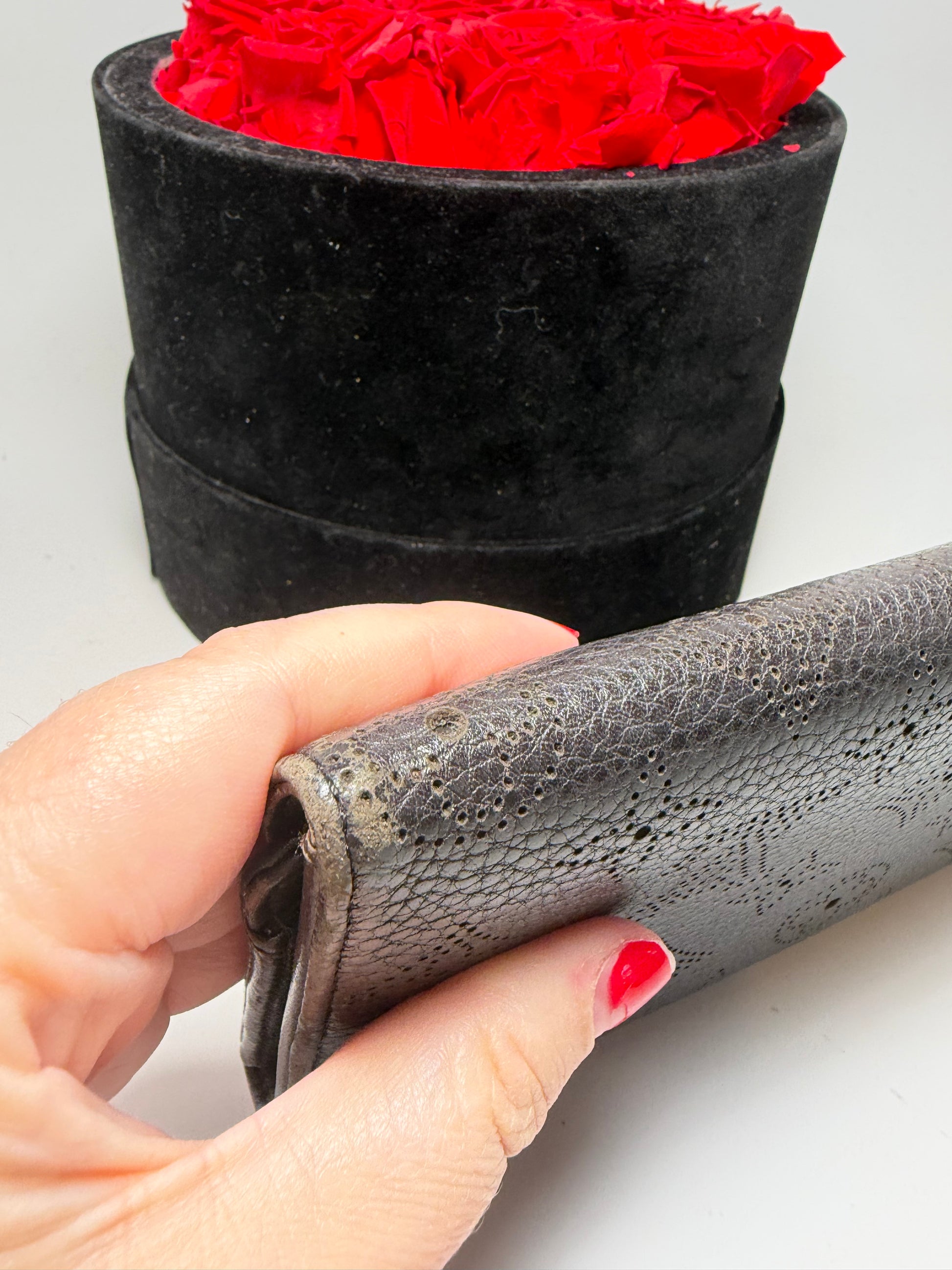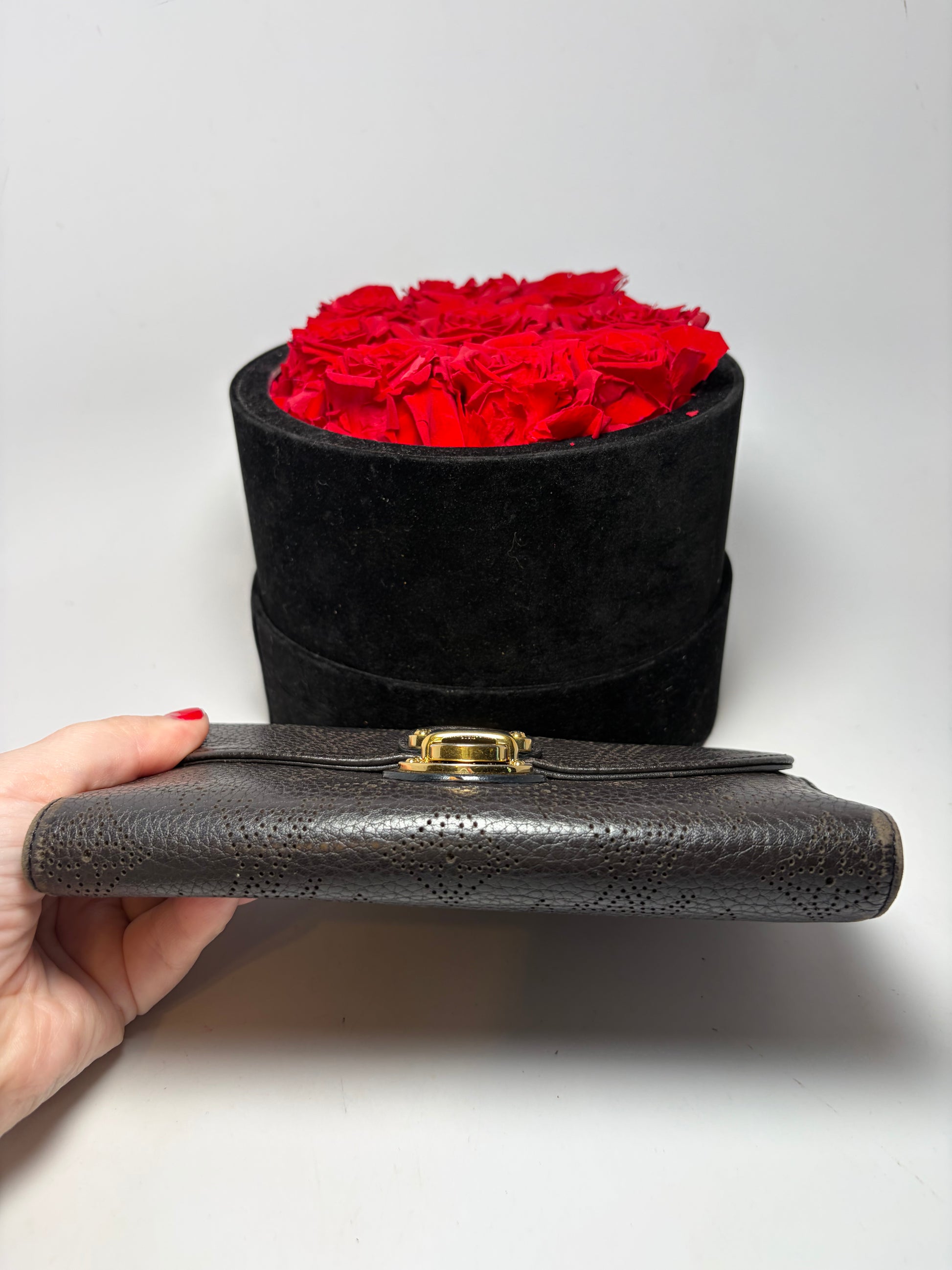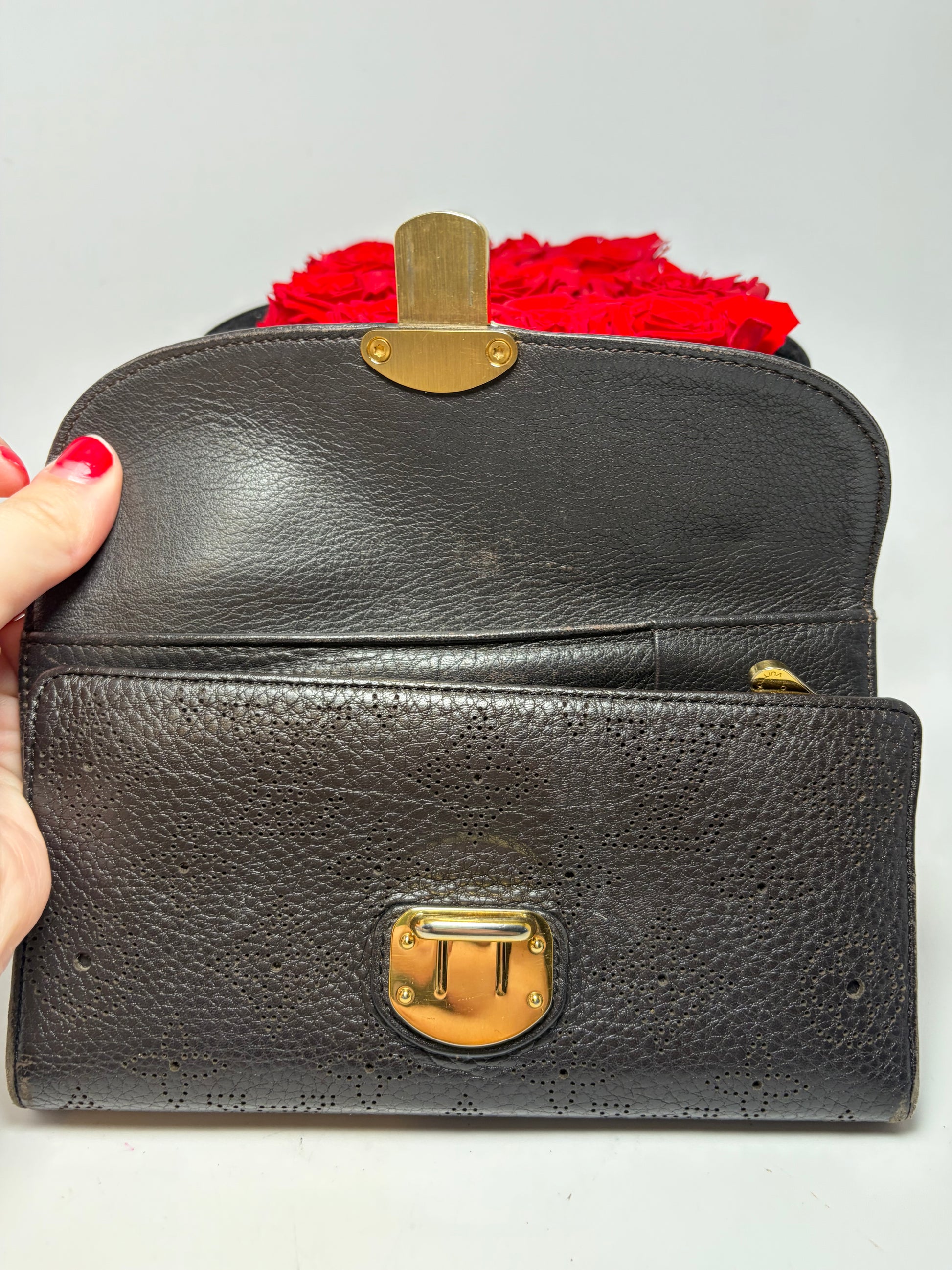 Louis Vuitton Mahina Amelia Wallet Black Leather Monogram Embossed