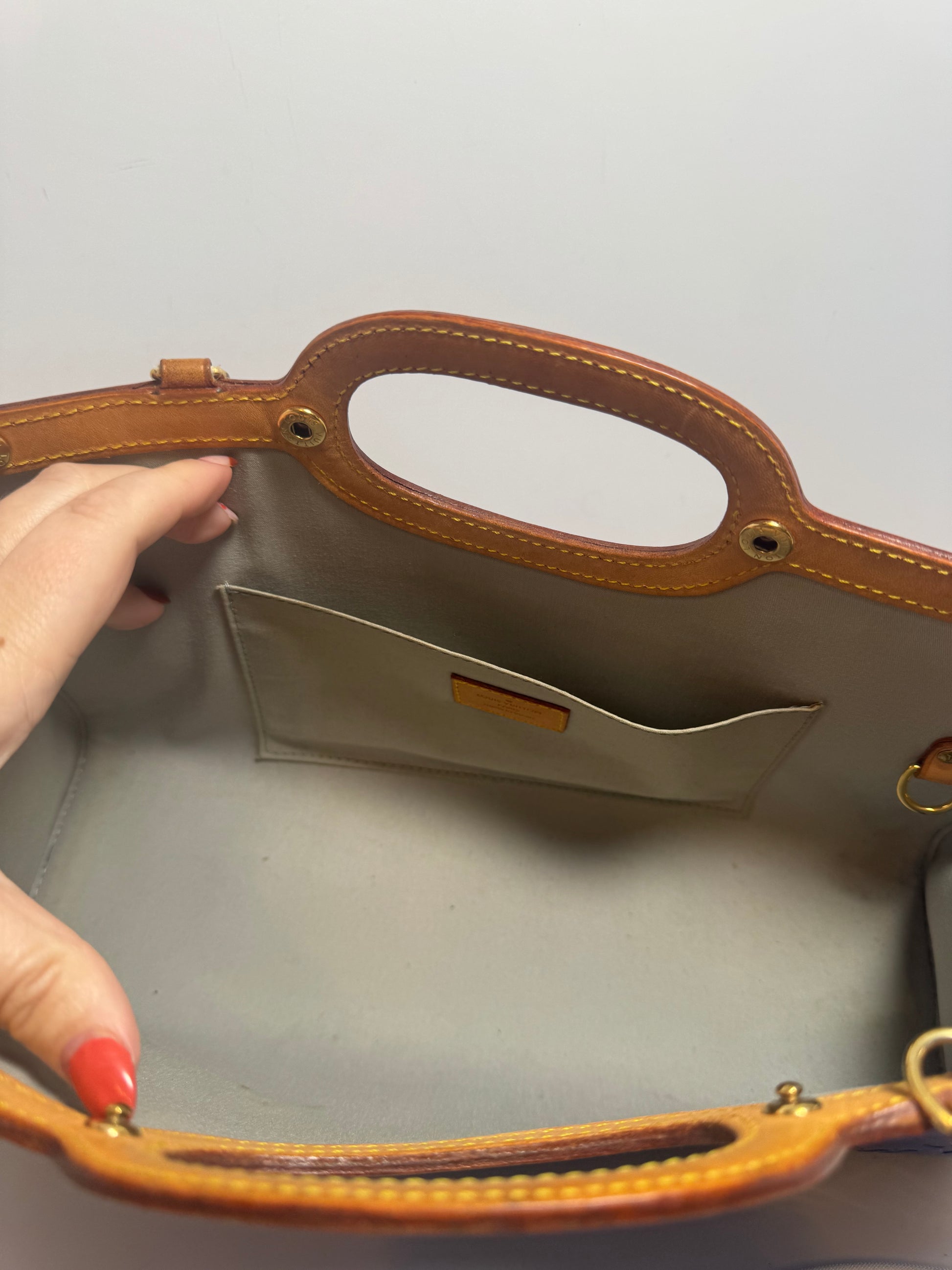 EXCELLENT condition! Only flaw I see is tiny darker spot on the vernis on the bottom. Clean interior, no stains, no odor. Comes with the original LV shoulder strap.