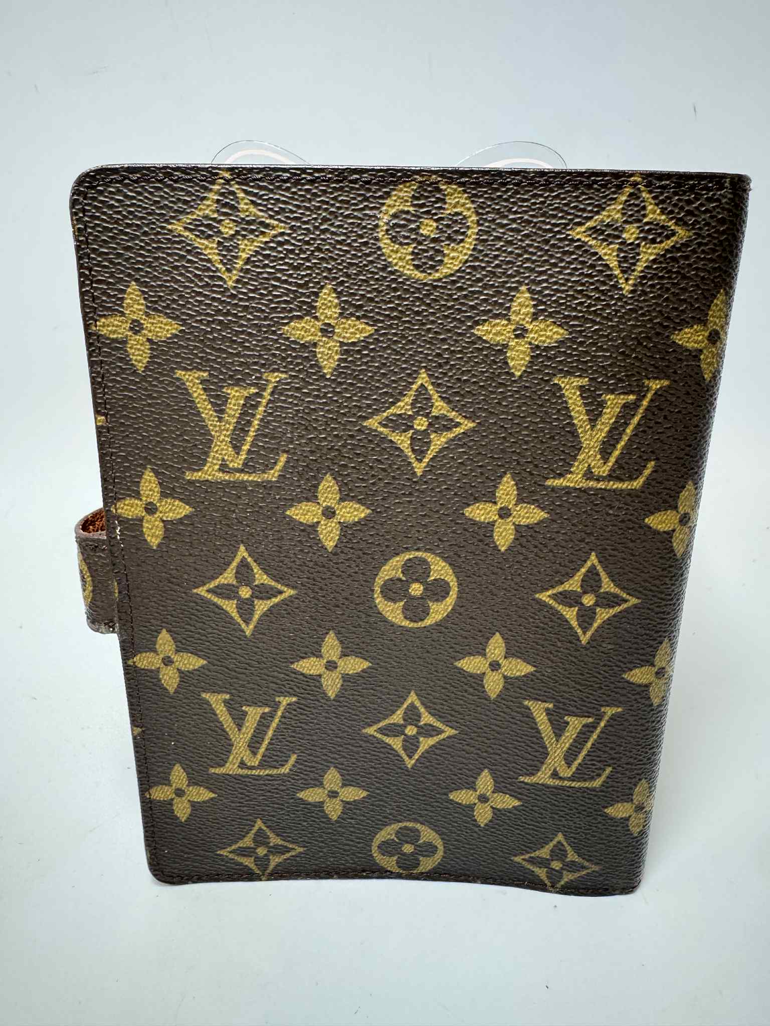 Good condition. Has peeling on one of the pockets- no stickiness. Has very tiny cracks near the binding (pictured in last photo). Typical for the agenda MM due to the rings and binding. Does not come with inserts. Snap is secure.