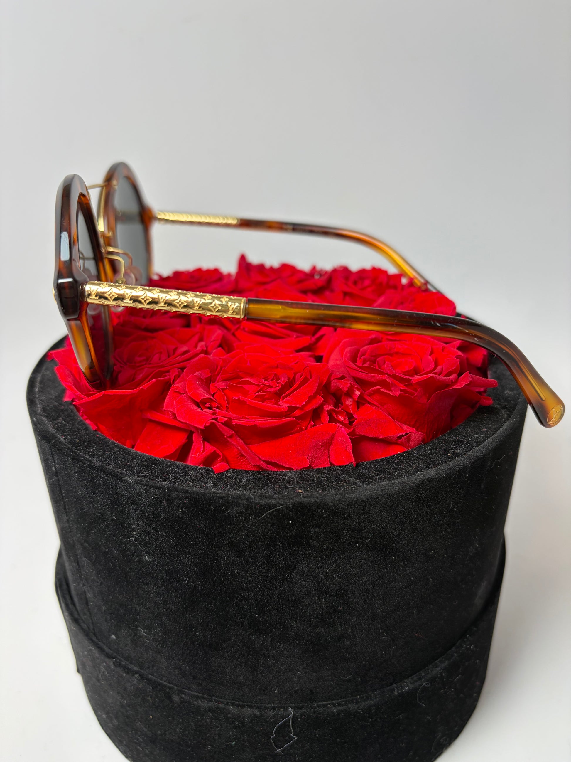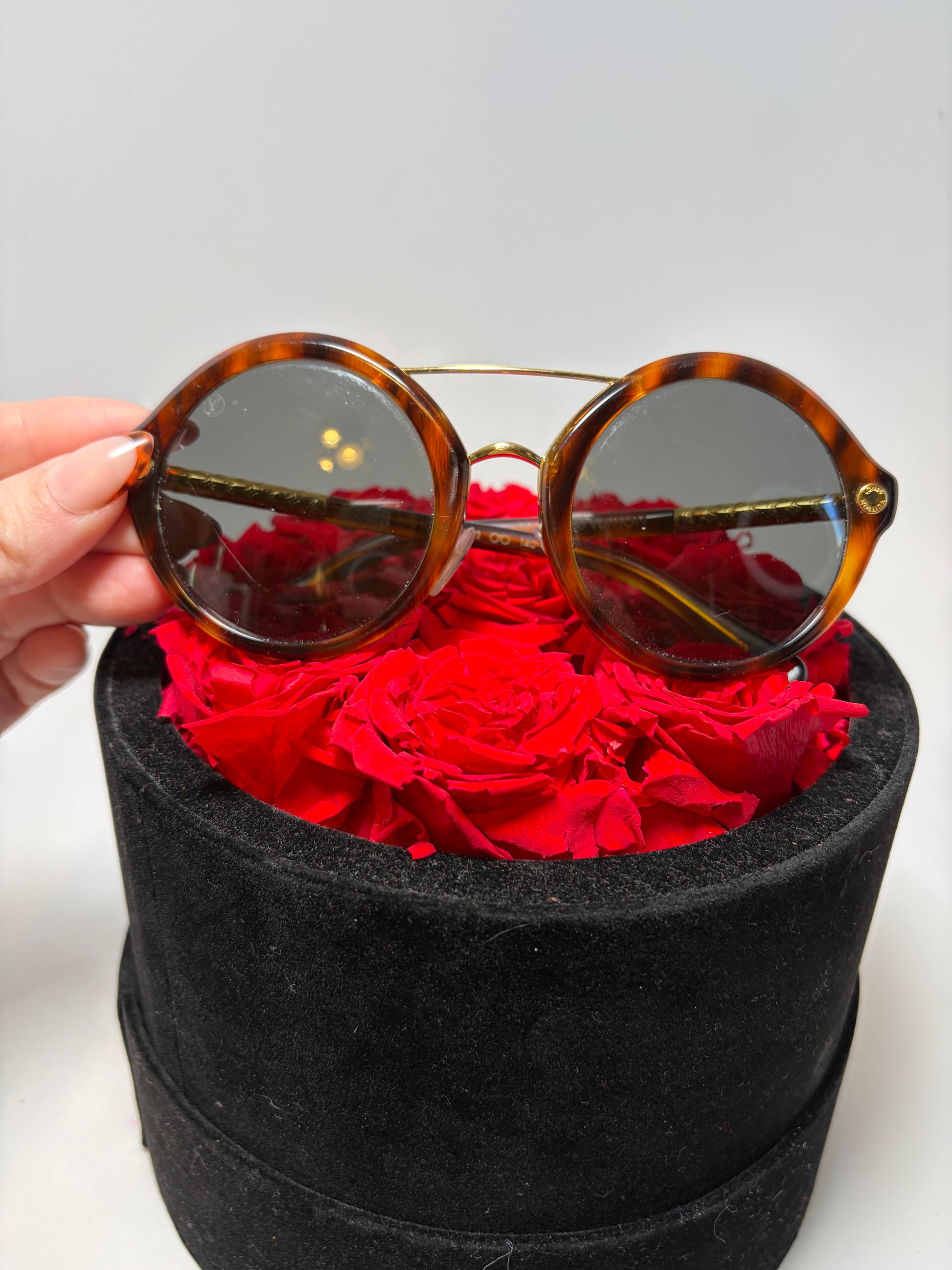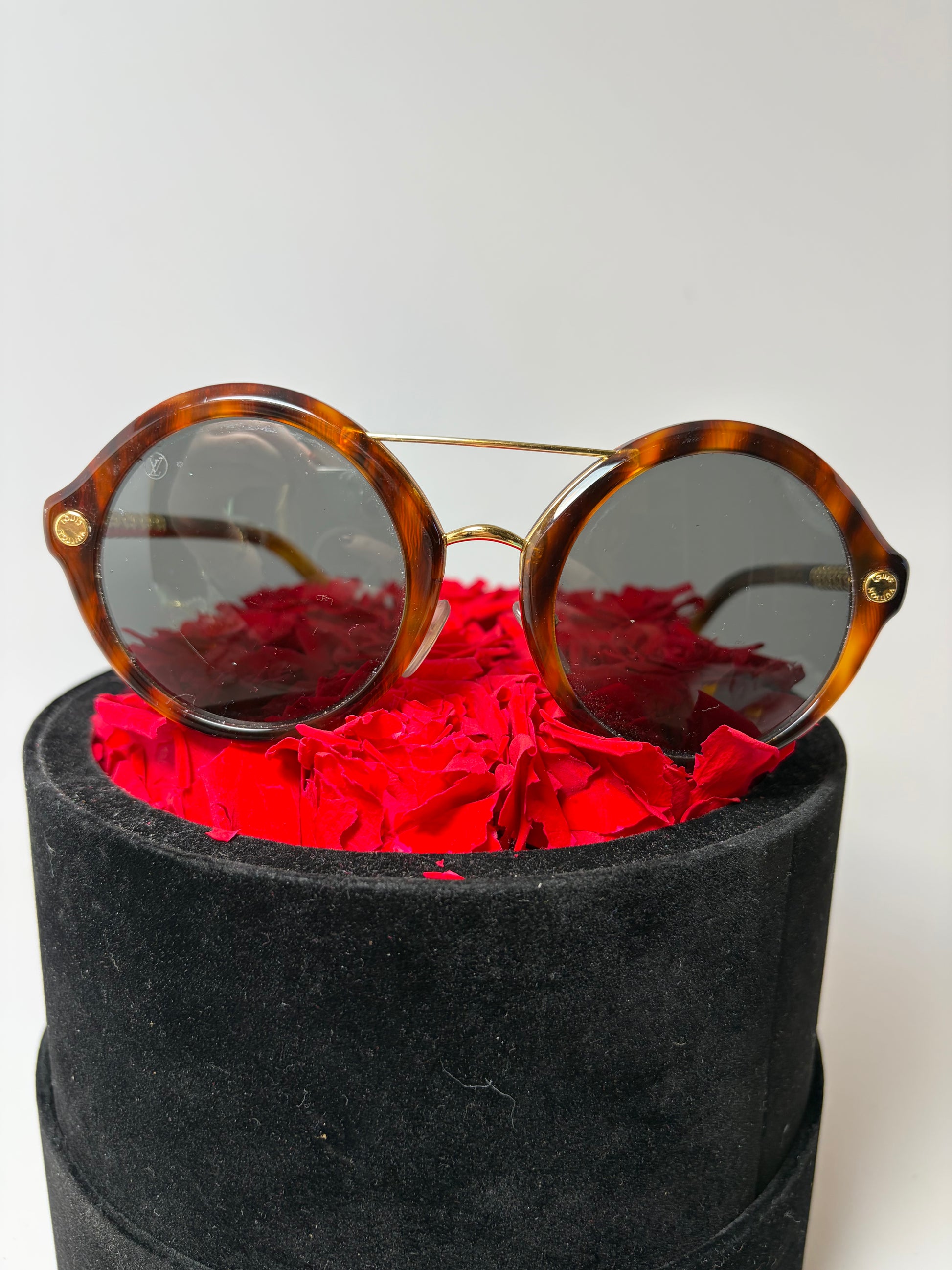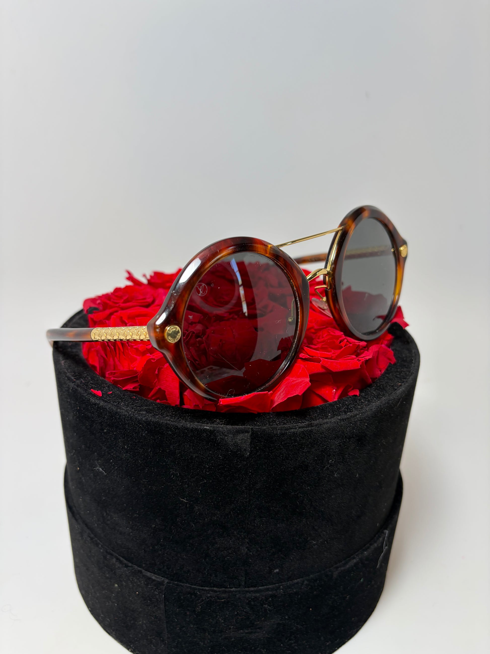 Louis Vuitton Brown Tortoise Round Sunglasses with Gold Monogram Details