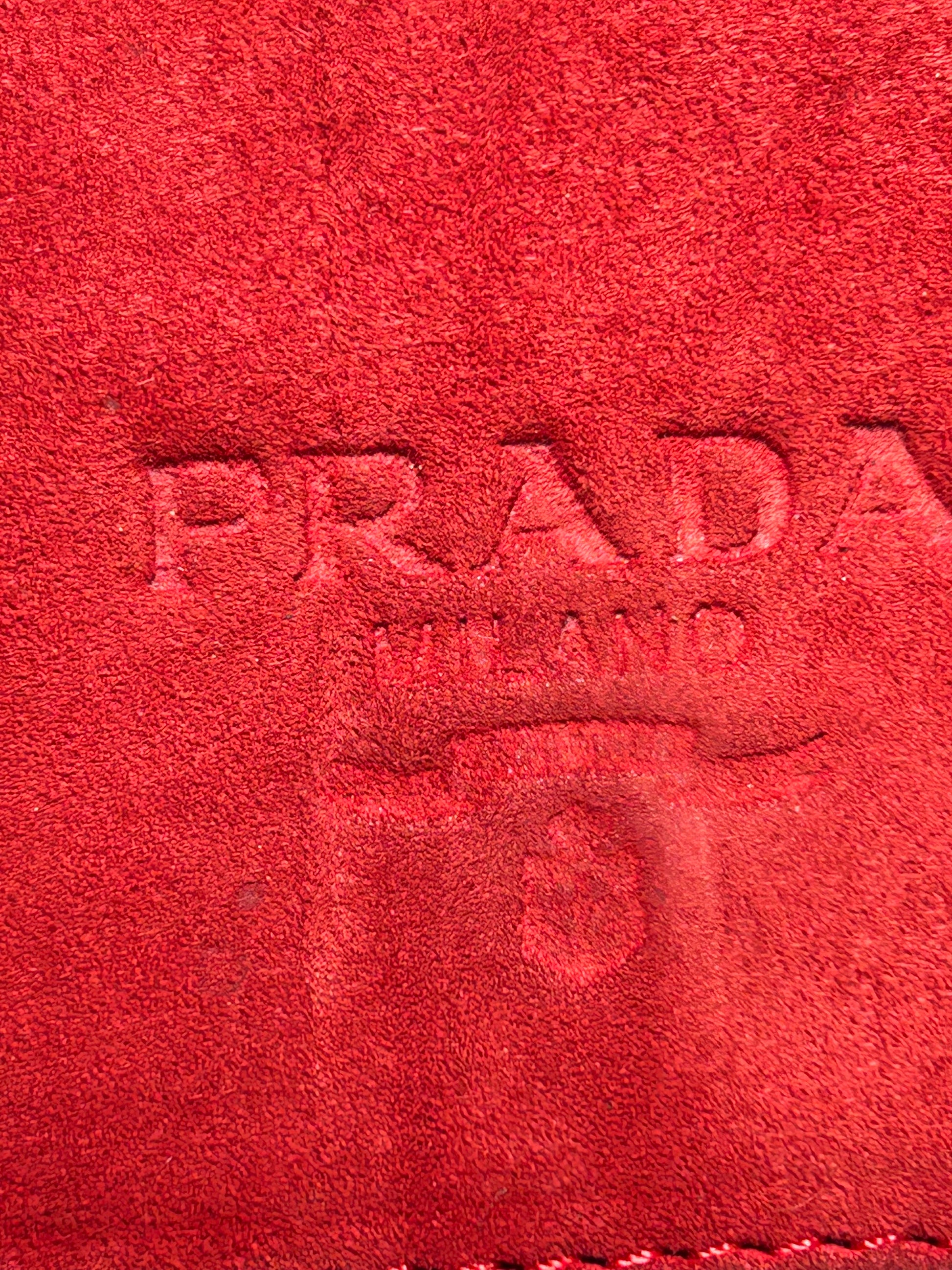 Expertly crafted by Prada, this Red Suede Chain Shoulder Bag is a stunning addition to any wardrobe. Made with a soft red suede exterior, the bag measures 8” (w) x 7” (h) x 3” (d) and features a 19” strap drop. This versatile bag can be worn as a crossbody or shoulder bag, making it perfect for any occasion. Authenticity is guaranteed.