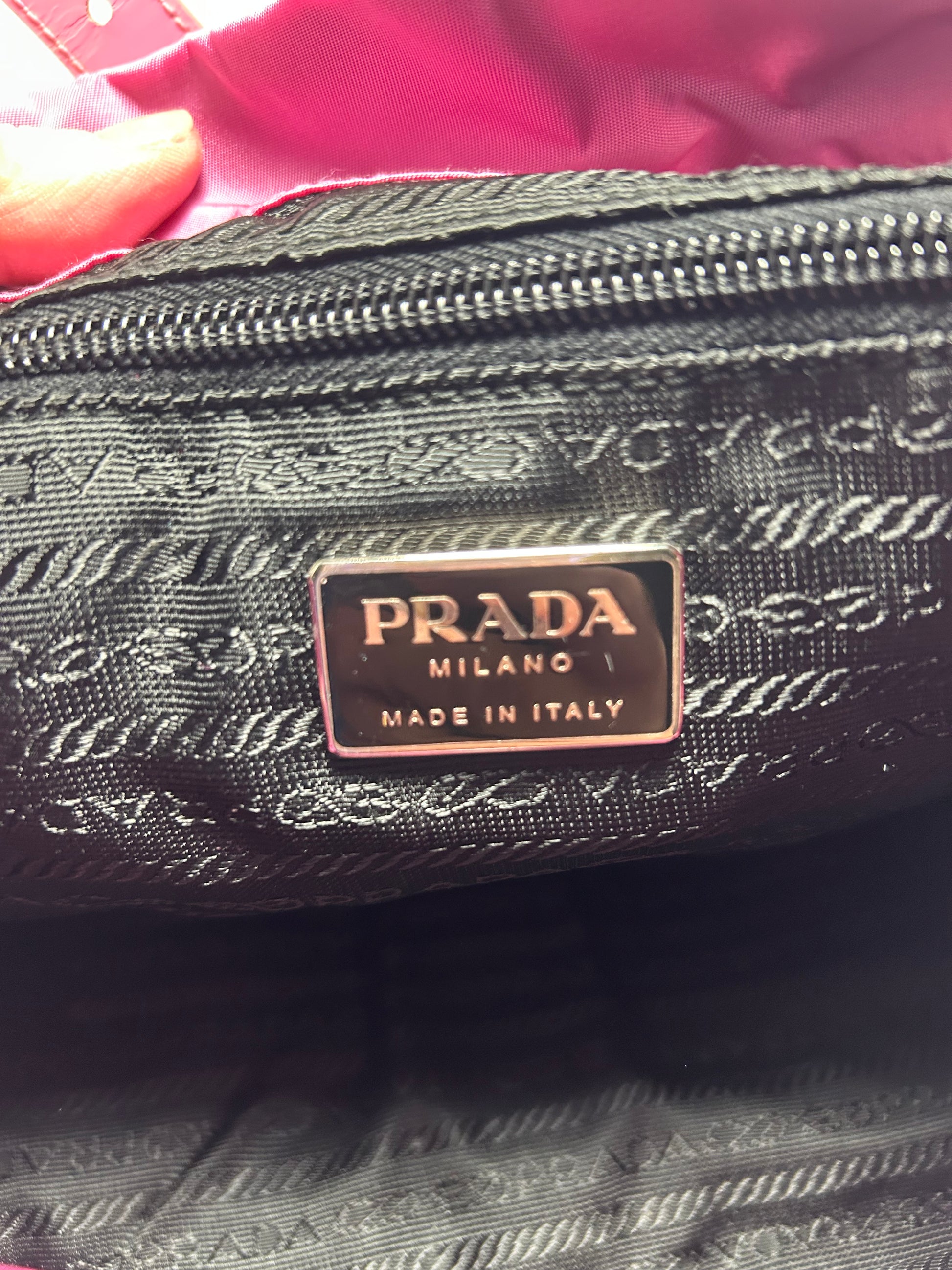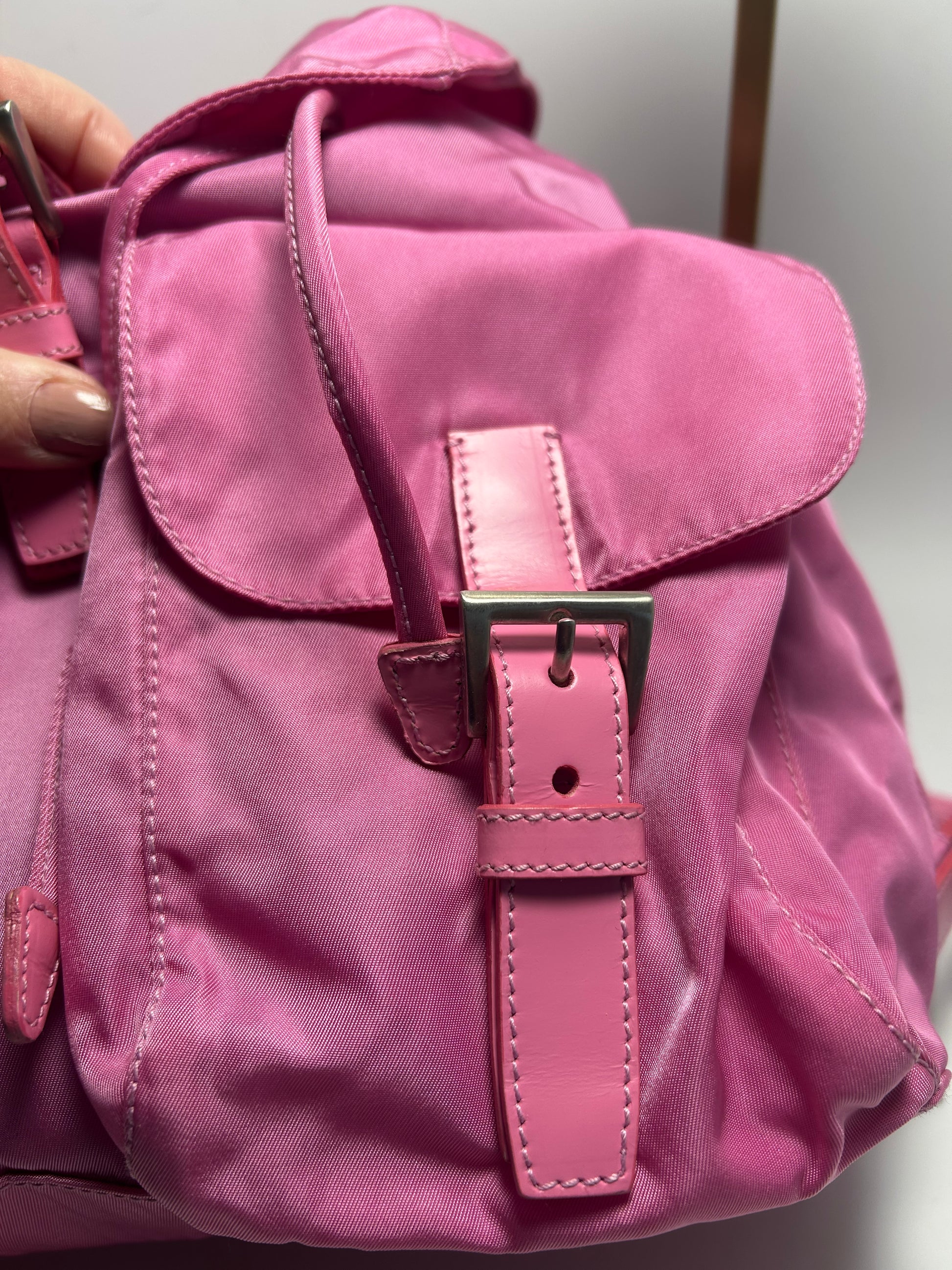 The Prada Vella Double Pocket Pink Backpack combines style and functionality with its sleek design and quality craftsmanship. Measuring 14" wide, 13" high, and 6" deep, it offers ample space for essentials, while adjustable straps ensure comfortable wear. Its double-pocket layout provides organized storage, making it ideal for daily use or travel. This backpack is in good condition, reflecting Prada’s commitment to durable luxury. An elegant and practical choice for those seeking both fashion and convenience in a versatile accessory.