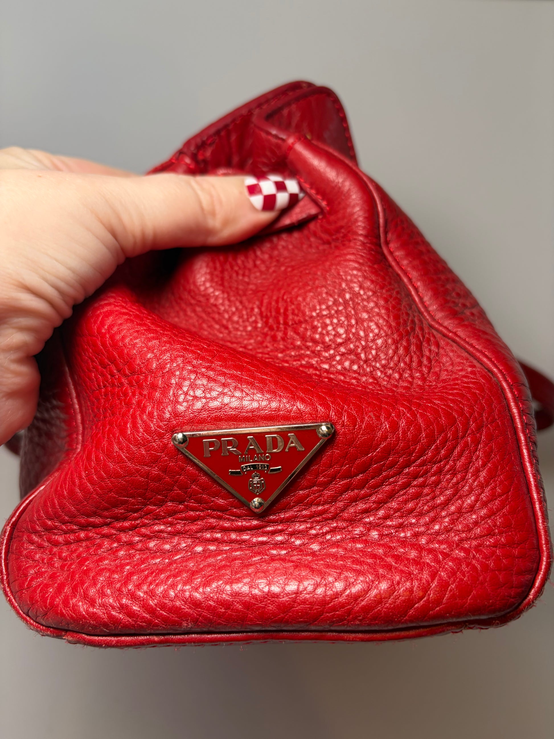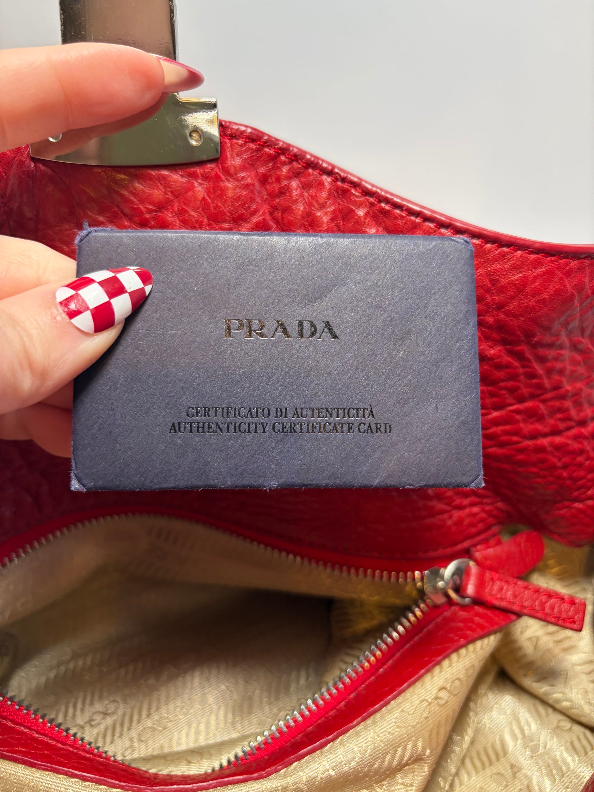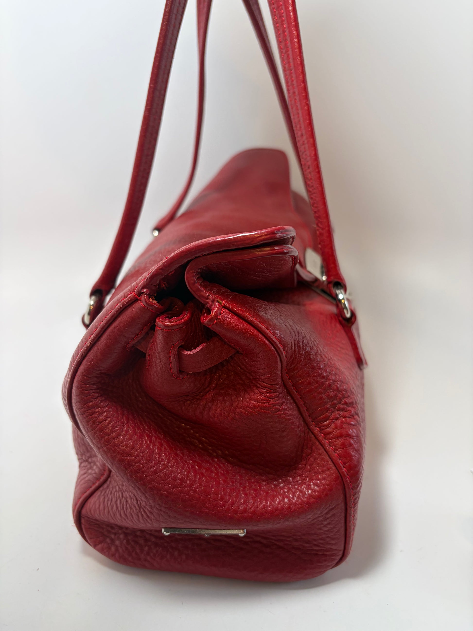 Prada Vitello Easy Red Leather East West Shoulder Bag
