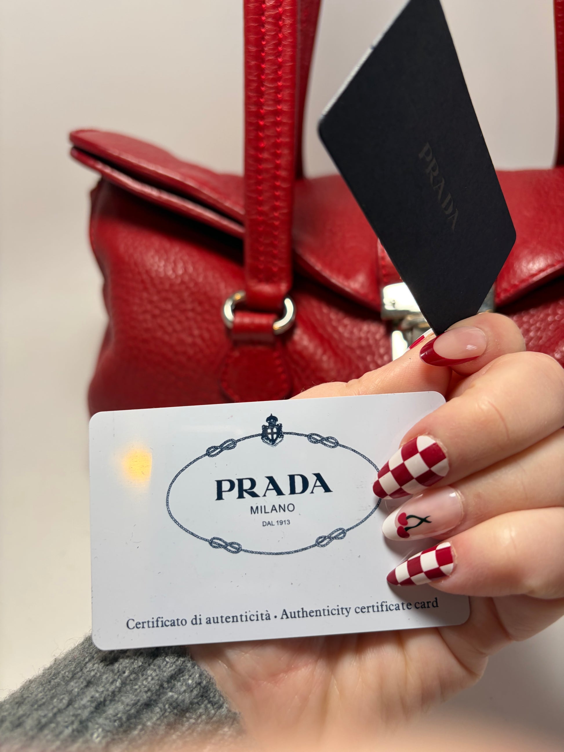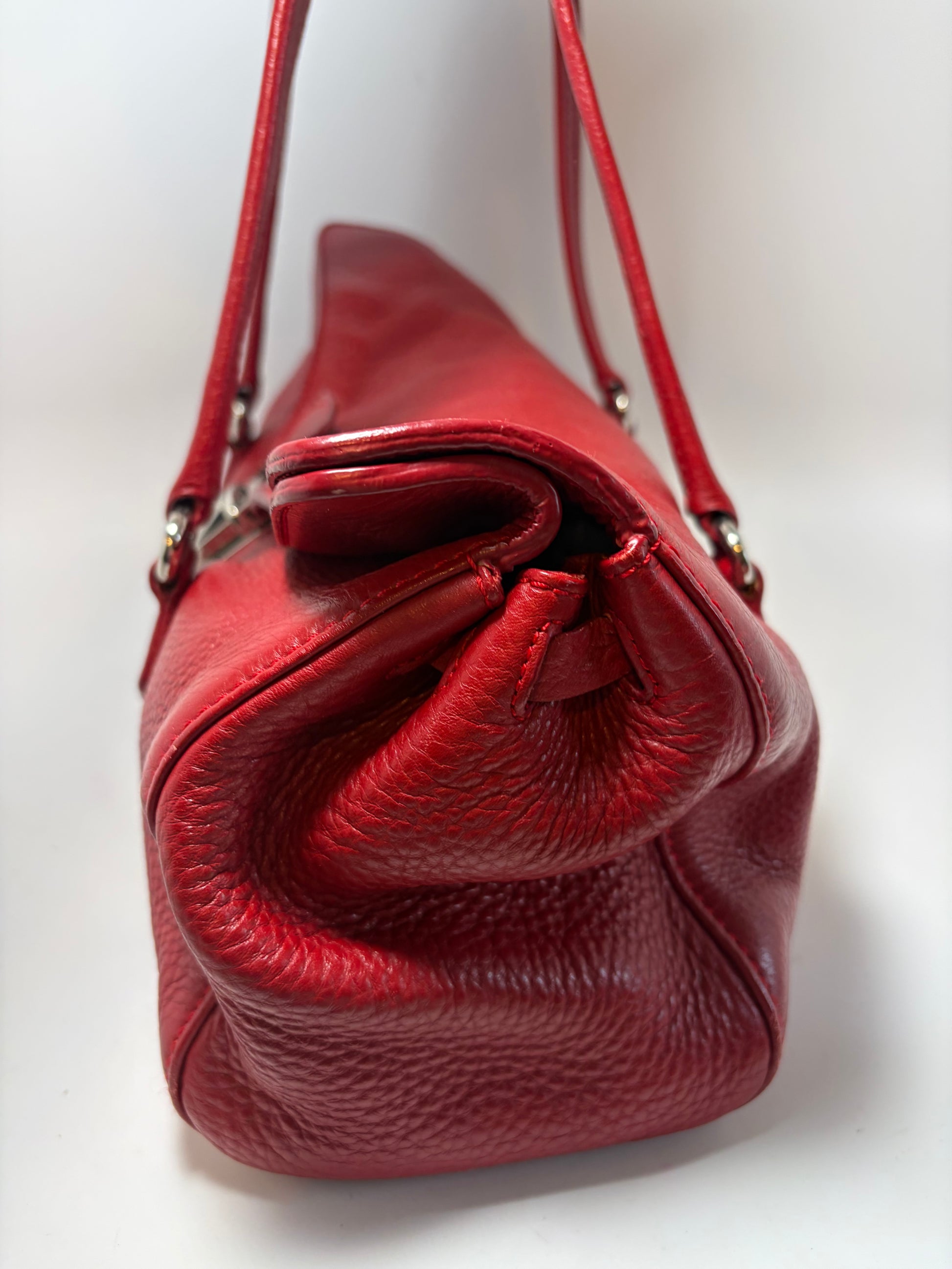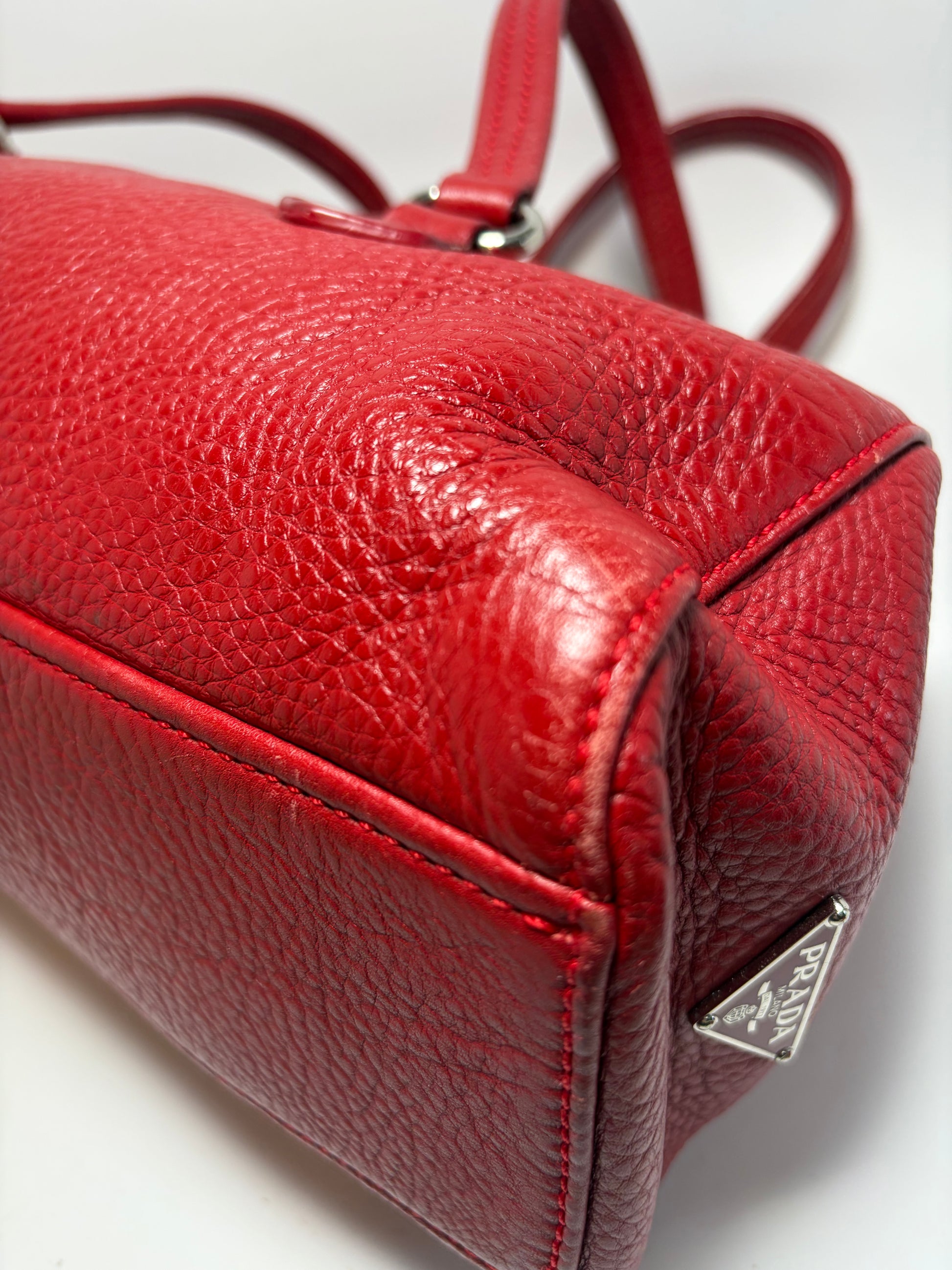 Prada Vitello Easy Red Leather East West Shoulder Bag