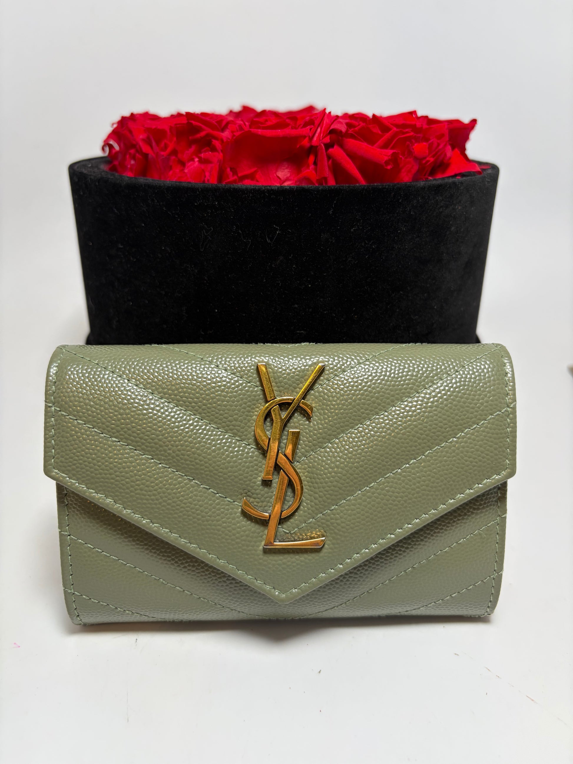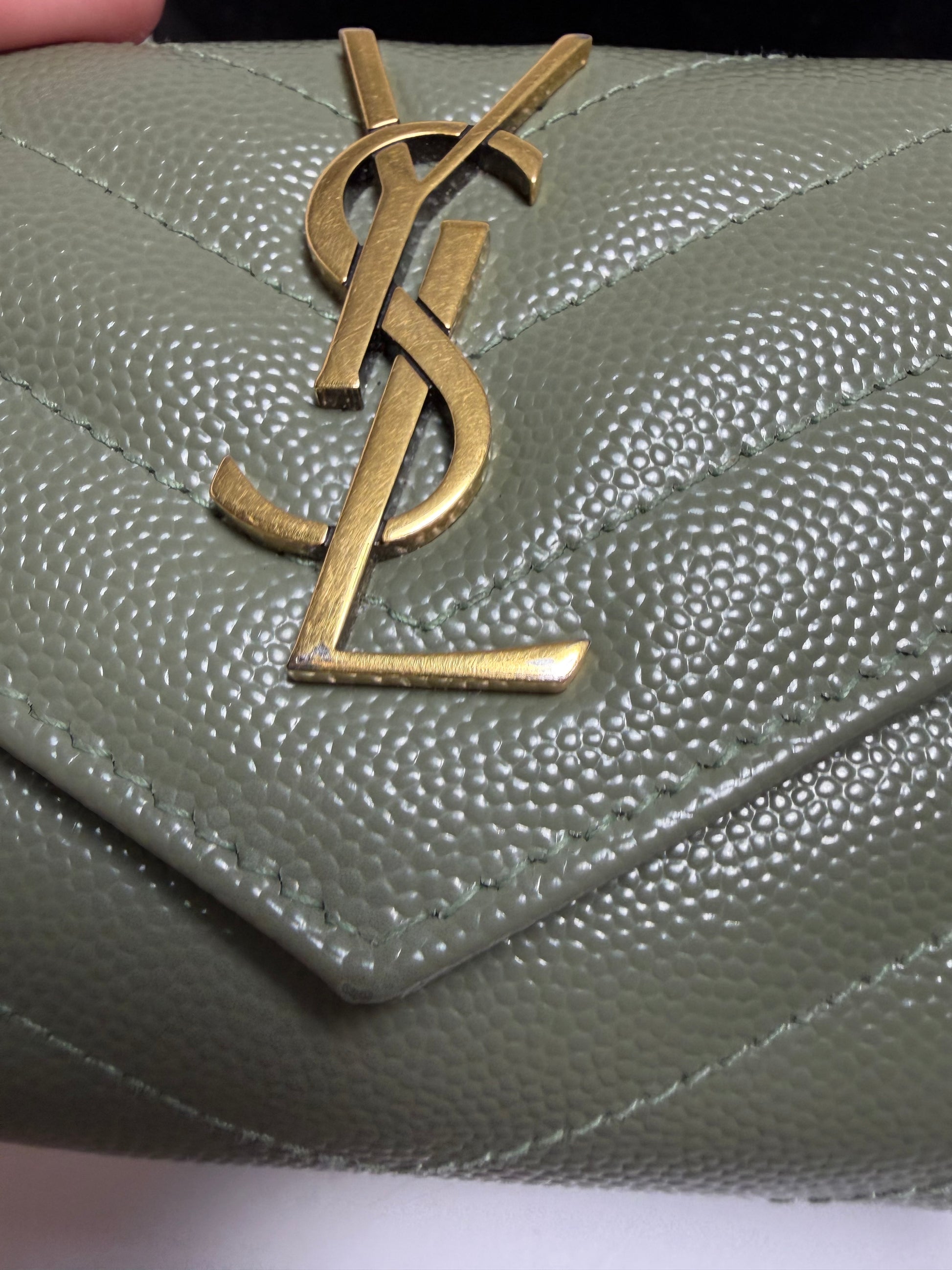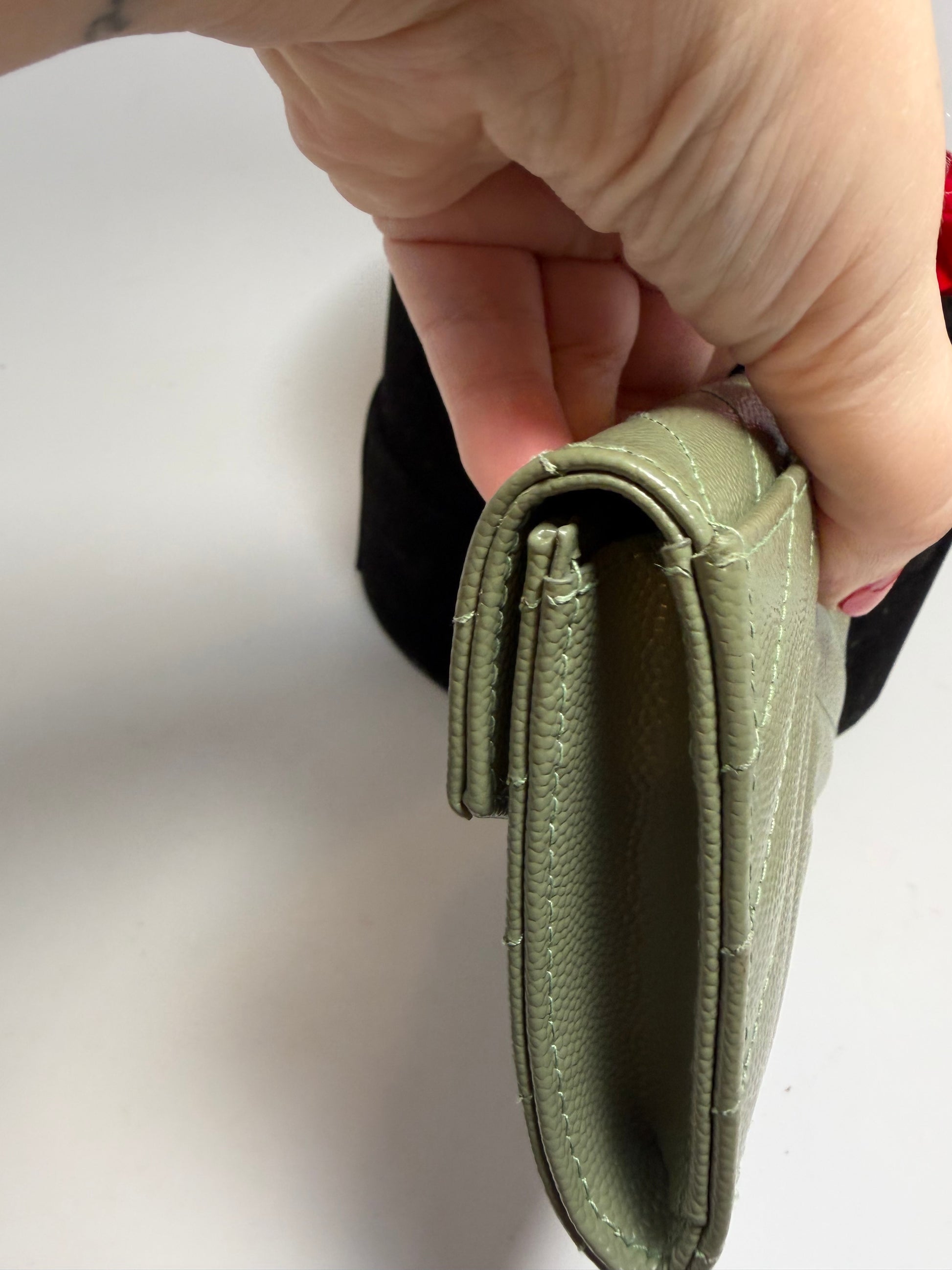 Saint Laurent Grain De Poudre Matelasse Chevron Small Envelope Wallet Light Sage 2022